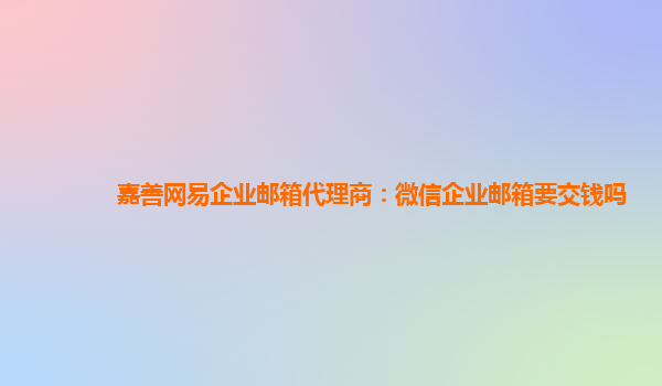 2024-03-14選擇余姚網易企業郵箱代理商,為什么要考慮騰訊企業郵箱和微信? 在現今互聯網時代,企業郵箱已經成為了企業日常通信的重要工具之一。那么,在如此眾多的企業郵箱代理商中,為什么要選擇余姚網易企業郵箱代理商,并...