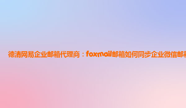 2024-03-14以德清網易企業郵箱代理商:foxmail郵箱如何同步企業微信郵箱隨著數字化的浪潮不斷推進,企業需要有效的郵件和即時通訊工具來協調和溝通,這也導致了企業郵箱的需求不斷增加。而企業微信作為一項集即時通訊、視頻會...