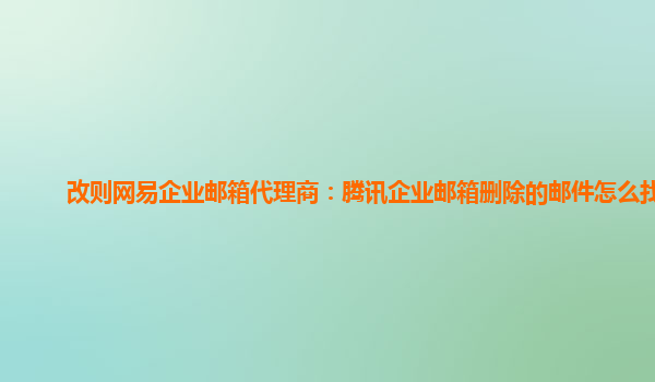 2024-03-14如何找回被刪除的騰訊企業郵箱郵件? 騰訊企業郵箱是目前企業使用最廣泛的一款企業郵件服務,但是在使用過程中難免會遇到一些問題,比如誤刪重要郵件。那么,如何找回已經刪除的郵件呢?以下是一些有效的方法: 方...