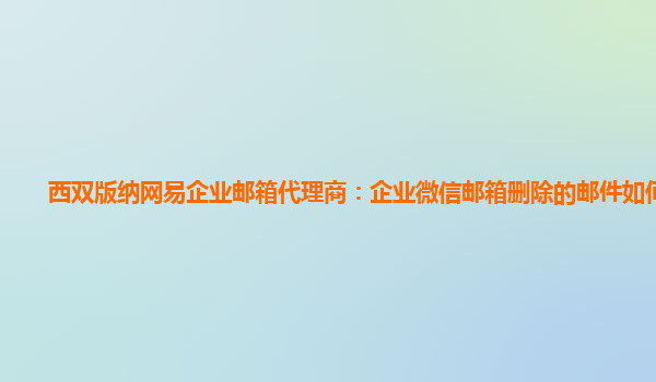 2024-03-14昆明網易企業郵箱代理商:企業郵箱找回郵件按鈕在哪里 隨著企業數字化轉型的加速,企業郵箱已經成為企業溝通、工作的重要工具。而在使用企業郵箱的過程中,有時候會遇到找回郵件的需求,今天我們就來聊一聊網易企業...
