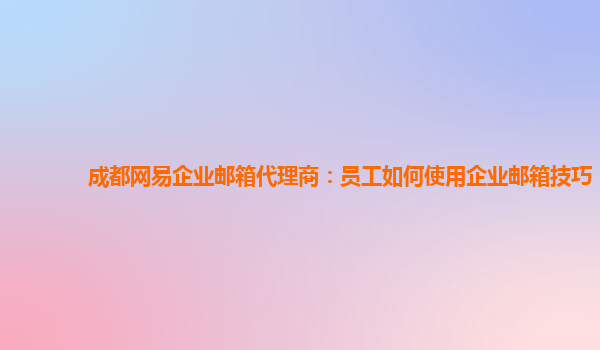 2024-03-14成都網易企業郵箱代理商:員工如何使用企業郵箱技巧 企業郵箱的優勢 隨著現代化辦公環境的不斷更新,越來越多的企業開始選擇使用企業郵箱。相比普通郵箱,企業郵箱有以下幾個明顯的優勢: 安全保障:企業郵箱可以...