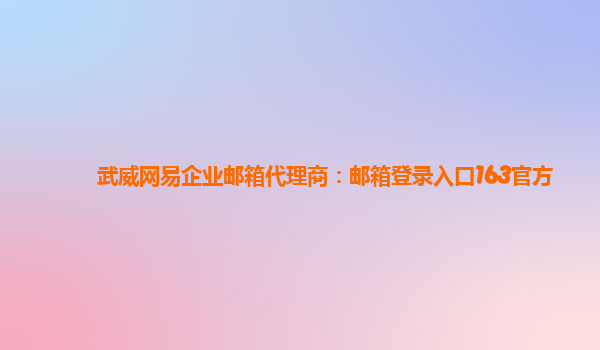 2024-03-14金昌網易企業郵箱代理商:郵箱登錄入口163官網 網易企業郵箱是國內知名的企業郵箱服務提供商,為企業提供穩定、高效、安全的郵箱服務。作為金昌地區的網易企業郵箱代理商,我們為您提供方便快捷的服務,讓您享受到...