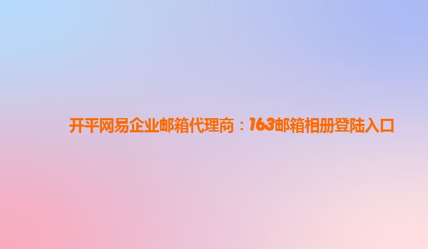 2024-03-14開平網易企業郵箱代理商:163郵箱相冊登陸入口 介紹 網易企業郵箱作為國內領先的企業郵箱服務商,已經成功服務超過100萬家企業客戶。作為開平地區的代理商之一,我們在此為大家介紹163郵箱相冊登陸入口。 優勢 網...
