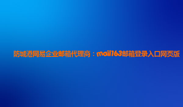 防城港網易企業郵箱代理商:mail163郵箱登錄入口網頁版 網易企業郵箱是一款專為企業用戶定制的高效、安全、穩定的企業級郵箱產品。作為防城港地區的網易企業郵箱代理商,我們為您提供最優質的服務,讓您的企業溝通更...