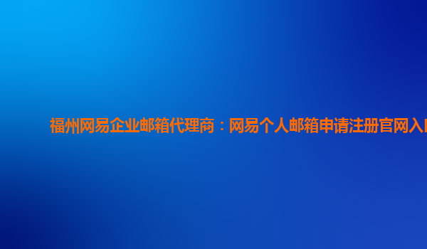 2024-03-14網易企業郵箱代理商:免費注冊網易個人郵箱 網易企業郵箱代理商是網易公司的合作伙伴,致力于為企業和個人提供可靠、安全、便捷的郵箱服務。其中,網易個人郵箱注冊免費,受到廣大用戶的青睞。 網易企業郵箱的優勢...
