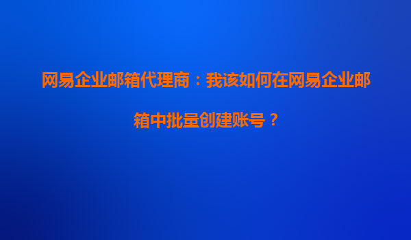 2025-09-18網(wǎng)易企業(yè)郵箱代理商分享:如何在網(wǎng)易企業(yè)郵箱中批量創(chuàng)建賬號(hào) 一、網(wǎng)易企業(yè)郵箱及其代理商的優(yōu)勢(shì) 網(wǎng)易企業(yè)郵箱作為國內(nèi)領(lǐng)先的企業(yè)級(jí)電子郵件服務(wù)商,憑借穩(wěn)定安...