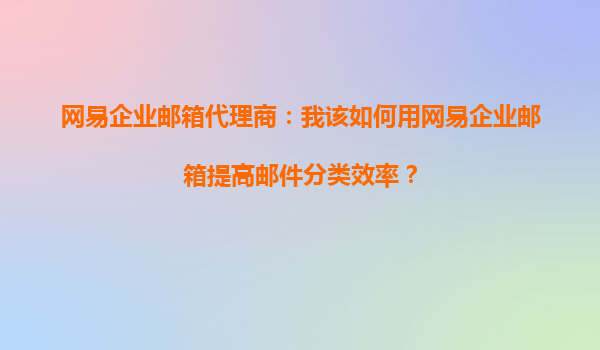 4008-020-360 網(wǎng)易企業(yè)郵箱代理商:我該如何用網(wǎng)易企業(yè)郵箱提高郵件分類效率? 一、網(wǎng)易企業(yè)郵箱的優(yōu)勢(shì) 作為一名網(wǎng)易企業(yè)郵箱代理商,我深知企業(yè)郵箱在日常工作中的重要性。尤其是在郵件分類效率方面,網(wǎng)易企業(yè)郵箱...