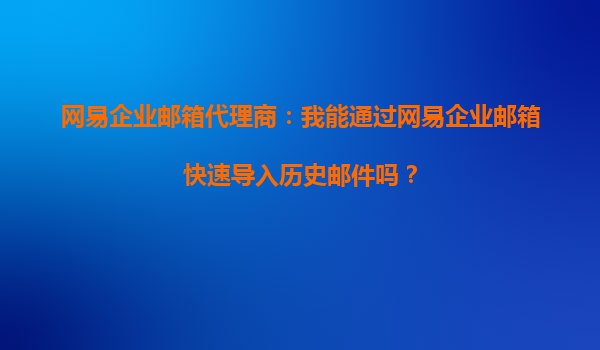 2025-09-19網(wǎng)易企業(yè)郵箱代理商:我能通過網(wǎng)易企業(yè)郵箱快速導(dǎo)入歷史郵件嗎? 在現(xiàn)代企業(yè)管理中,高效的郵件系統(tǒng)是日常溝通和業(yè)務(wù)運(yùn)營的基礎(chǔ)工具之一。網(wǎng)易企業(yè)郵箱作為國內(nèi)知名的企業(yè)級(jí)郵箱服務(wù)提供商,憑借其穩(wěn)...