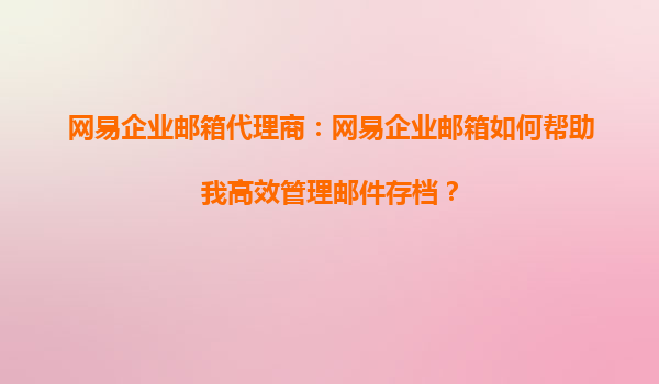2025-09-19網(wǎng)易企業(yè)郵箱代理商:網(wǎng)易企業(yè)郵箱如何幫助我高效管理郵件存檔? 一、引言 在現(xiàn)代企業(yè)中,郵件溝通是日常工作的重要組成部分。隨著業(yè)務(wù)量的增加,郵件數(shù)量也呈指數(shù)級(jí)增長(zhǎng),如何高效管理郵...