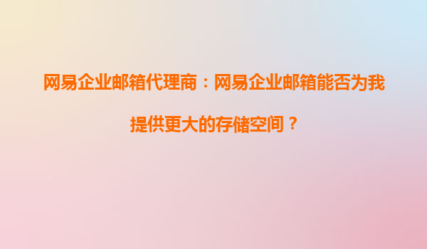 2025-09-20網(wǎng)易企業(yè)郵箱代理商:網(wǎng)易企業(yè)郵箱能否為我提供更大的存儲(chǔ)空間? 引言:企業(yè)郵箱的存儲(chǔ)需求 在數(shù)字化辦公時(shí)代,企業(yè)對(duì)郵箱存儲(chǔ)空間的需求日益增長(zhǎng)。隨著業(yè)務(wù)的擴(kuò)展和數(shù)據(jù)量的積累,...