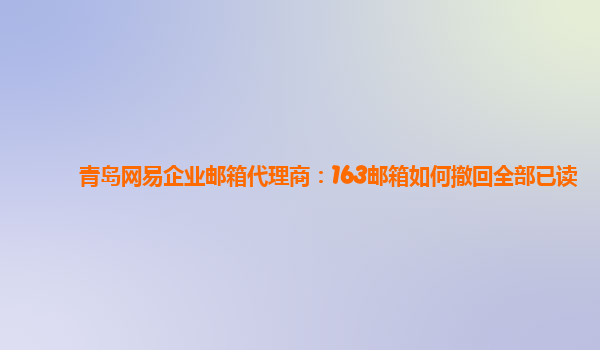 2024-03-08青島網易企業郵箱代理商:163郵箱如何撤回全部已讀 在現代社會,電子郵件已經成為人們工作和生活中必不可少的溝通工具。而網易企業郵箱作為國內一流的企業郵箱服務提供商,其穩定性和安全性備受用戶信...