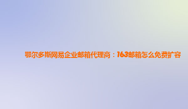2024-03-08鄂爾多斯網易企業郵箱代理商:163郵箱怎么免費擴容 隨著企業的發展壯大,使用163企業郵箱已經成為很多企業的首選。而在使用過程中,很多企業都會面臨一個共同的問題:郵箱空間不足,需要擴容。那么,如何免...
