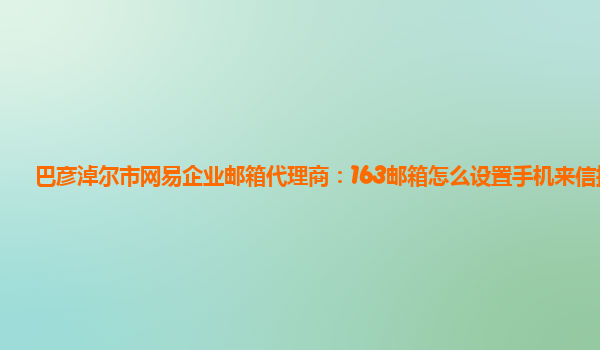 2024-03-08巴彥淖爾市網易企業郵箱代理商:163郵箱怎么設置手機來信提醒 隨著移動互聯網的快速發展,手機成為我們日常工作和生活中不可或缺的工具之一。而作為企業郵箱的主流品牌之一,網易企業郵箱提供了多種實用功能,其中...