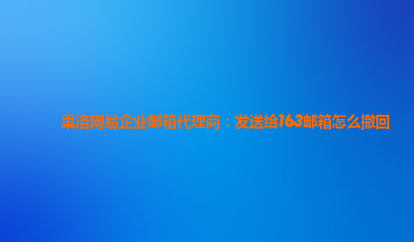 2024-03-08果洛網易企業郵箱代理商:發送給163郵箱怎么撤回來 果洛網易企業郵箱是一款功能強大、穩定可靠的企業郵箱服務,許多企業和個人用戶都選擇使用它來處理郵件通訊。當我們在使用果洛網易企業郵箱代理商發送郵件時,...