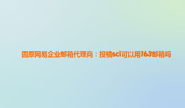 2024-03-08固原網易企業郵箱代理商:投稿SCI可以用163郵箱嗎 很多科研人員在投稿SCI論文時,都會遇到一個問題:郵箱是否會影響稿件的接收與處理?作為固原地區的網易企業郵箱代理商,我們將為大家解答這個問題。 網易企業郵...