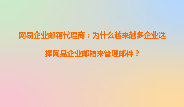 2025-09-18網(wǎng)易企業(yè)郵箱代理商:快速上手企業(yè)郵箱的基本功能指南 一、網(wǎng)易企業(yè)郵箱的核心優(yōu)勢 網(wǎng)易企業(yè)郵箱作為國內(nèi)領(lǐng)先的企業(yè)級郵件服務(wù)平臺,以卓越的穩(wěn)定性和安全性著稱。其采用分布式集群架構(gòu),保障99.9%的服務(wù)可用性...