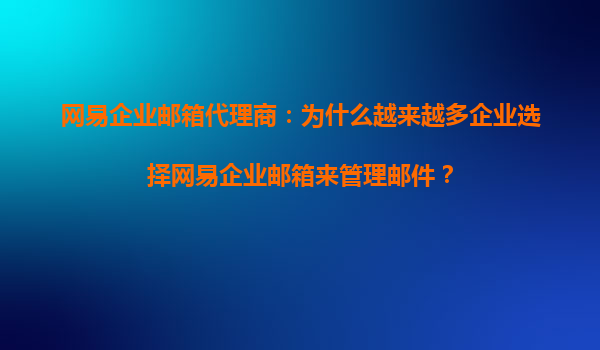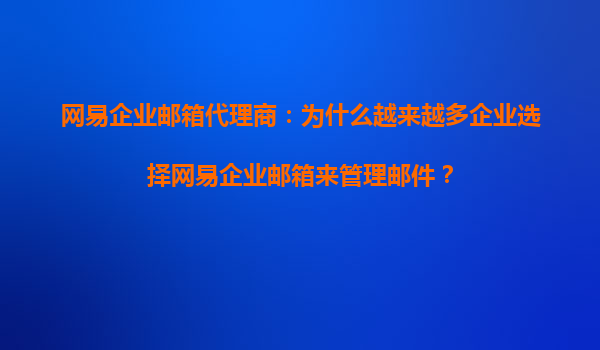 2025-09-18網(wǎng)易企業(yè)郵箱代理商:為什么越來越多企業(yè)選擇網(wǎng)易企業(yè)郵箱來管理郵件? 一、網(wǎng)易企業(yè)郵箱的市場背景與需求增長 隨著數(shù)字化轉(zhuǎn)型的加速,電子郵件作為企業(yè)內(nèi)外溝通的核心工具,其安全性和穩(wěn)定性愈發(fā)受...