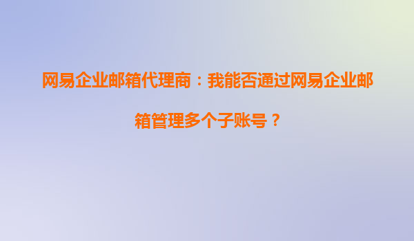 2025-09-18網(wǎng)易企業(yè)郵箱代理商:如何高效管理多個(gè)子賬號 一、網(wǎng)易企業(yè)郵箱的多賬號管理功能 網(wǎng)易企業(yè)郵箱作為國內(nèi)領(lǐng)先的企業(yè)級郵件服務(wù),提供了強(qiáng)大的多賬號管理能力。企...