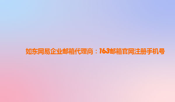 2024-03-08網易企業郵箱代理商:163郵箱官網注冊手機號 作為網易企業郵箱的代理商,我們了解到注冊手機號對于如東網易企業郵箱的重要性。通過手機號注冊賬號,可以幫助企業更好地管理郵箱賬戶,提高安全性和便利性。 優勢一:...