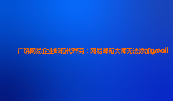 廣饒網易企業郵箱代理商:網易郵箱大師無法添加gmail 隨著互聯網的快速發展,電子郵件已經成為人們日常工作和生活中不可或缺的一部分。在選擇企業郵箱時,網易企業郵箱成為了很多公司的首選,其穩定可靠的性能備受...