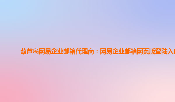 2024-03-01葫蘆島網易企業郵箱代理商:網易企業郵箱網頁版登陸入口 隨著互聯網的發展,企業對于郵箱服務的需求越來越大。作為一家專業的葫蘆島網易企業郵箱代理商,我們為各類企業提供穩定可靠的企業郵箱解決方案,讓您的商務...