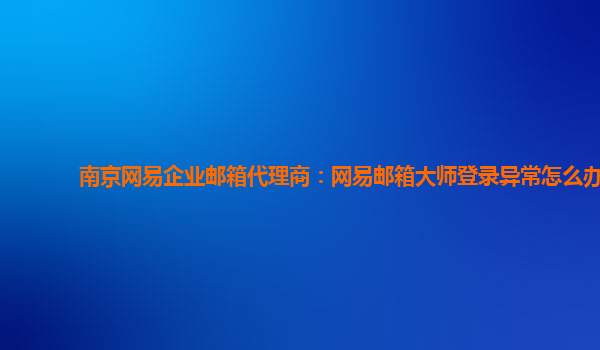 2024-02-29南京網易企業郵箱代理商:網易郵箱大師登錄異常怎么辦 作為一名南京網易企業郵箱代理商,我們經常會遇到用戶在使用網易企業郵箱的過程中遇到各種問題。今天,我們要解答的問題是“網易郵箱大師登錄異常怎么辦?” ...