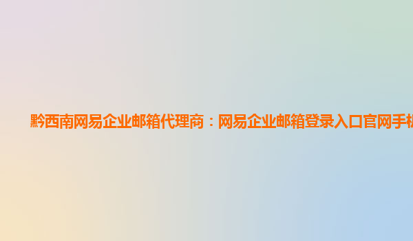 2024-02-28仁懷網易企業郵箱代理商:網易郵箱怎么注冊淘寶 網易企業郵箱優勢 作為國內知名的企業級郵件服務提供商,網易企業郵箱具備以下優勢: 服務器位于國內,速度快,穩定性高; 安全可靠,擁有完善的防垃圾郵...