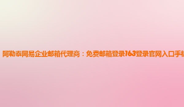 2024-02-26阿勒泰網易企業郵箱代理商:免費郵箱登錄163登錄官網入口手機版下載 網易企業郵箱是一款功能強大、安全穩定的企業郵件解決方案,受到廣大企業用戶的青睞。作為阿勒泰地區的網易企業郵箱代理商,我...