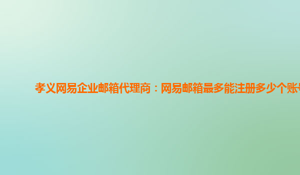 2024-02-26網易企業郵箱代理商:網易郵箱最多能注冊多少個賬號 網易企業郵箱是國內知名的企業郵箱服務提供商之一,為企業用戶提供了穩定、安全、高效的企業郵箱解決方案。作為網易企業郵箱代理商,我們經常接到關于網易郵箱的...