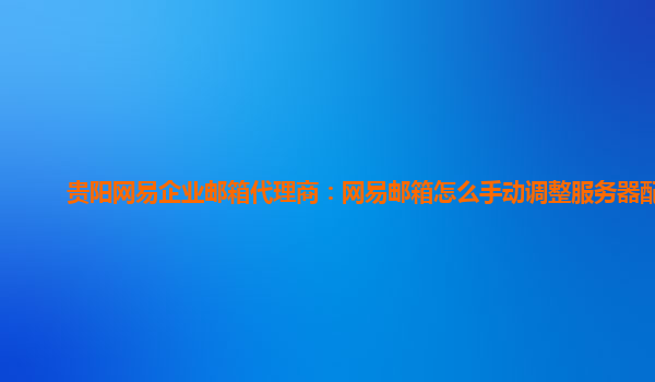 2024-02-22貴陽網易企業郵箱代理商:網易郵箱如何手動調整服務器配置 作為貴陽地區的網易企業郵箱代理商,我們經常接到客戶反饋需要手動調整服務器配置的需求。在使用網易企業郵箱的過程中,有時候會出現一些特殊需...