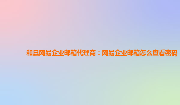 2024-02-22和縣網易企業郵箱代理商:網易企業郵箱怎么查看密碼 作為和縣的網易企業郵箱代理商,我們經常收到關于如何查看密碼的問題。下面我們將為大家詳細介紹。 網易企業郵箱密碼查看方法: 要查看網易企...