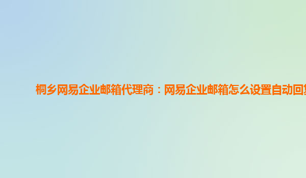 2024-02-22桐鄉網易企業郵箱代理商:網易企業郵箱怎么設置自動回復 作為桐鄉地區的網易企業郵箱代理商,我們經常接到用戶關于如何設置自動回復的問題。今天我們就來詳細介紹一下網易企業郵箱如何設置自動回復,并分享一些使用...