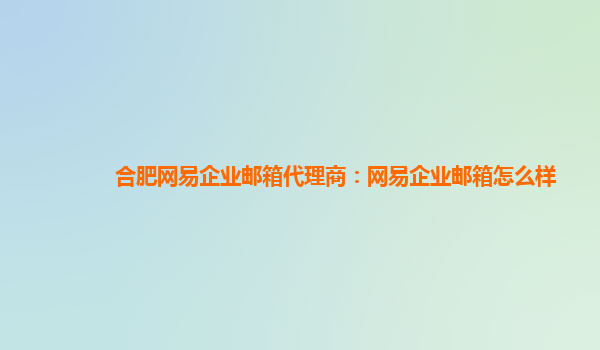 合肥網易企業郵箱代理商:網易企業郵箱怎么樣 在當今信息化的時代,企業郵箱已經成為了企業辦公必不可少的工具之一。網易企業郵箱作為國內較知名的企業郵箱之一,受到了廣泛的認可和使用。那么,網易企業郵箱到底有...