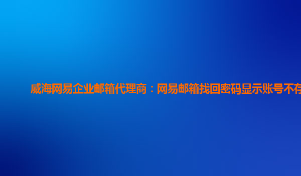 2024-02-20以威海網易企業郵箱代理商:網易郵箱找回密碼顯示賬號不存在 最近有不少用戶在使用網易企業郵箱時遇到了一個問題,就是找回密碼時顯示賬號不存在。這個問題讓很多人感到困惑和焦慮,因為郵箱是我們日常工作中必不...