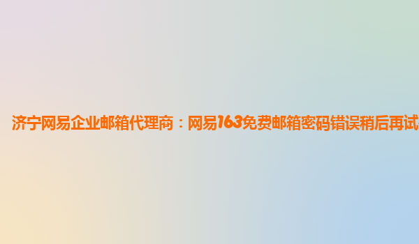 2024-02-20濟寧網易企業郵箱代理商:網易163免費郵箱密碼錯誤稍后再試是多久 作為濟寧地區的網易企業郵箱代理商,我們深知企業郵箱在日常辦公中的重要性。網易163免費郵箱是國內知名的郵箱服務提供商之一,其穩定、安全且功能...
