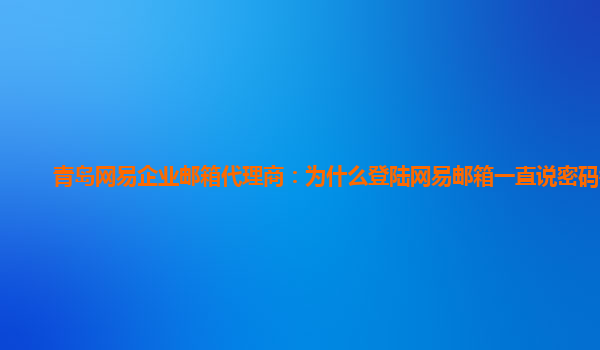 2024-02-20青島網易企業郵箱代理商:為什么登陸網易郵箱一直說密碼錯誤 隨著互聯網的發展,電子郵件已經成為人們日常工作和生活中不可缺少的一部分。而作為國內知名的郵箱服務提供商之一,網易企業郵箱備受用戶青睞。然而,有...