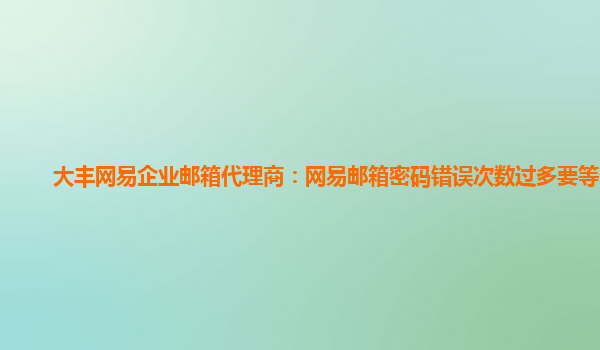 2024-02-19網易企業郵箱代理商:網易郵箱密碼錯誤次數過多要等多久 網易企業郵箱是一款專為企業用戶定制的高效便捷的企業郵箱解決方案,擁有穩定可靠的服務和豐富的功能,受到了廣泛的好評。而作為網易企業郵箱的代理商,我們...