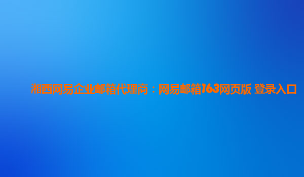 2024-02-19湘西網易企業郵箱代理商:網易郵箱163網頁版登錄入口 網易企業郵箱是一款功能強大的企業郵箱服務,為企業用戶提供穩定可靠的郵件收發服務。作為湘西地區的網易企業郵箱代理商,我們為客戶提供專業的郵箱服務,讓您...