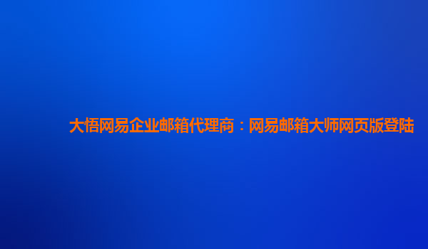 2024-02-19大悟網易企業郵箱代理商:網易郵箱大師網頁版登陸 網易企業郵箱優勢 網易企業郵箱是國內領先的企業郵箱服務提供商,具有以下優勢: 穩定可靠:采用高級數據加密技術,保障郵件傳輸安全。 功能強大:支持日程管...
