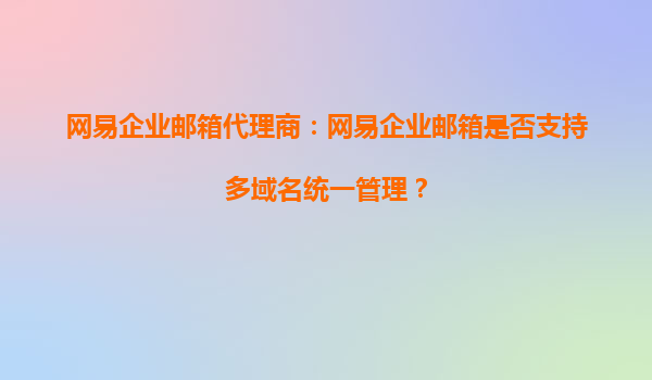 2025-09-16網(wǎng)易企業(yè)郵箱代理商:網(wǎng)易企業(yè)郵箱是否支持多域名統(tǒng)一管理? 在當(dāng)今數(shù)字化商業(yè)環(huán)境中,企業(yè)郵箱作為企業(yè)內(nèi)外溝通的重要工具,其管理效率和功能完備性直接影響企業(yè)的運營效率。許多企業(yè)在發(fā)展過程中,往往會擁有...