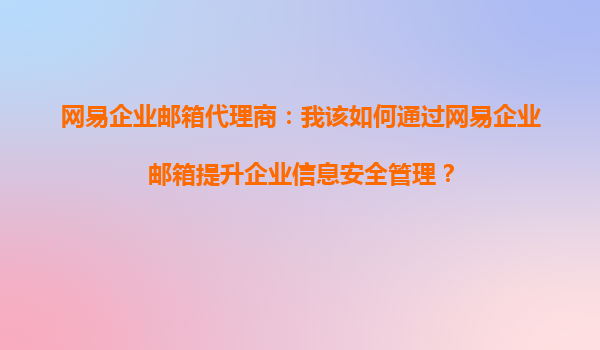 2025-09-16網(wǎng)易企業(yè)郵箱代理商:我該如何通過網(wǎng)易企業(yè)郵箱提升企業(yè)信息安全管理? 在數(shù)字化時代,企業(yè)信息安全已成為企業(yè)管理的重要課題。無論是內(nèi)部溝通還是客戶數(shù)據(jù)保護(hù),郵件安全都占據(jù)核心地位。作為國內(nèi)領(lǐng)先的企...