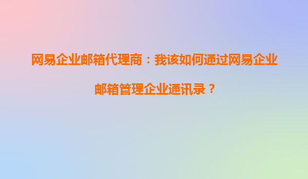 2025-09-16網(wǎng)易企業(yè)郵箱代理商:我該如何通過網(wǎng)易企業(yè)郵箱管理企業(yè)通訊錄? 在當(dāng)今快節(jié)奏的商業(yè)環(huán)境中,高效的企業(yè)通訊錄管理對于提升企業(yè)溝通效率和團(tuán)隊協(xié)作至關(guān)重要。作為中國領(lǐng)先的企業(yè)郵箱服務(wù)提供商,網(wǎng)易企業(yè)郵箱...