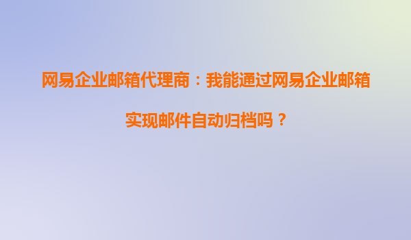 2025-09-16網(wǎng)易企業(yè)郵箱代理商:我能通過網(wǎng)易企業(yè)郵箱實現(xiàn)郵件自動歸檔嗎? 在數(shù)字化辦公時代,企業(yè)郵件的管理和歸檔成為提升工作效率、保障信息安全的重要環(huán)節(jié)。作為國內(nèi)領(lǐng)先的企業(yè)郵箱服務(wù)商,網(wǎng)易企業(yè)郵...