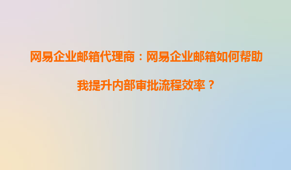 2025-09-16網(wǎng)易企業(yè)郵箱代理商:網(wǎng)易企業(yè)郵箱如何幫助我提升內(nèi)部審批流程效率? 一、引言:數(shù)字化辦公時代的高效需求 在數(shù)字化轉(zhuǎn)型加速的今天,企業(yè)內(nèi)部的審批流程效率直接影響業(yè)務(wù)響應(yīng)速度和運營成本。傳統(tǒng)紙質(zhì)或分...