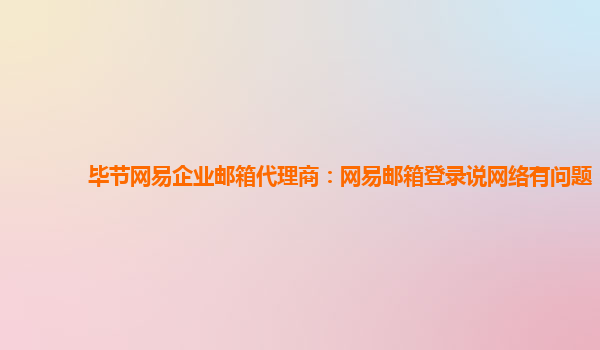 2024-02-18畢節網易企業郵箱代理商:網易郵箱登錄說網絡有問題 最近很多用戶反映在使用網易企業郵箱時遇到了網絡問題,導致無法正常登錄郵箱。作為畢節網易企業郵箱代理商,我們深知這個問題的嚴重性和影響,因此特別準備了本...