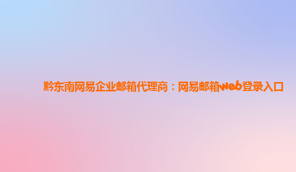 2024-02-18黔東南網易企業郵箱代理商:網易郵箱web登錄入口 簡介 作為黔東南地區的網易企業郵箱代理商,我們提供專業的企業郵箱服務,為客戶提供穩定可靠的企業郵箱解決方案。網易企業郵箱是國內領先的企業郵箱服務提供商,擁...