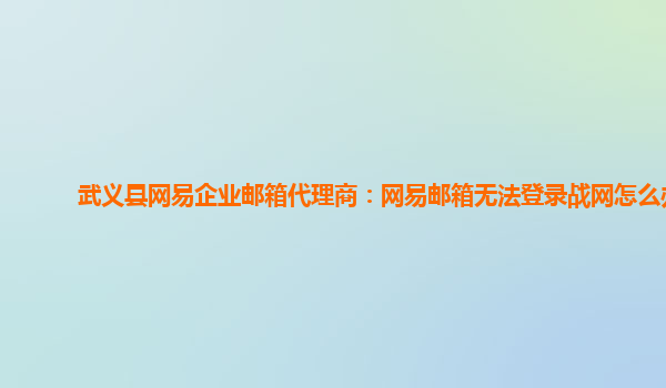 2024-02-17武義縣網易企業郵箱代理商:網易郵箱無法登錄戰網怎么辦 在日常工作中,我們經常使用網易企業郵箱來進行郵件的收發和管理。然而,有時候會遇到無法登錄網易企業郵箱的問題,尤其是在登錄戰網時。那么,面對這種情況...