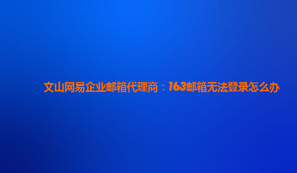 2024-02-17網易企業郵箱代理商:163郵箱無法登錄怎么辦 網易企業郵箱是一款廣受歡迎的企業級郵件服務,以其穩定性和便捷性而備受青睞。然而,有時候我們可能會遇到無法登錄163郵箱的問題。以下是一些建議和解決方案。 ...