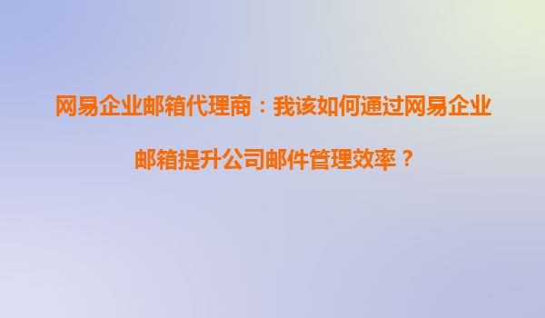 2025-09-16如何通過網(wǎng)易企業(yè)郵箱優(yōu)化外部客戶溝通流程 在當今競爭激烈的商業(yè)環(huán)境中,高效的外部客戶溝通對企業(yè)至關重要。作為專業(yè)的郵箱服務提供商,網(wǎng)易企業(yè)郵箱憑借其強大的功能和穩(wěn)定的性能,能夠顯著優(yōu)化企業(yè)與外部客...
