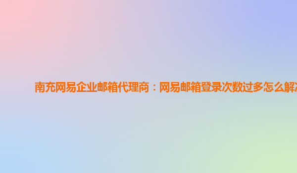 2024-02-16南充網易企業郵箱代理商:網易郵箱登錄次數過多怎么解決 網易企業郵箱作為業界知名的企業級郵箱服務商,為用戶提供了穩定高效的郵箱服務。然而,有時候我們可能會遇到網易郵箱登錄次數過多的問題。本文將為您詳細介...
